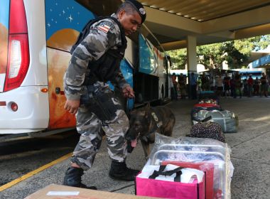 Iniciada na última quarta-feira (20), a Operação Fim de Ano, deflagrada pelas equipes da 1ª Companhia Independente da Polícia Militar (CIPM/Pernambués) e o Batalhão de Choque (BPCHq) no Terminal Rodoviário de Salvador, será estendida até o início do próximo ano. O maior foco é no combate ao tráfico de drogas. "Sabemos as rotas utilizadas pelos traficantes de drogas e abordamos os ônibus que fazem esses trajetos. As forças de segurança já promovem operações no aeroporto, ferry e estradas, porém percebemos que a Rodoviária é também outro ponto de alerta", explicou o major Agnaldo Ceita, idealizador da ação e comandante da 1ª Companhia Independente de Polícia Militar (CIPM). As abordagens são feitas quando o veículo estaciona, com o apoio da Companhia de Operações com Cães (COC) do BPCHq: os cães Andy, Ajax e Aramis (pastor alemão e malinois) farejam malas, mochilas e bolsas. Se o animal parar e sentar diante da bagagem, o responsável é convocado para acompanhar a abertura do material. Três pessoas foram presas na sexta-feira (22). Dois homens e uma mulher foram abordados no estacionamento da Rodoviária, onde se preparavam para embarcar. As equipes consideraram sua atitude suspeita e fizeram a abordagem. Foram encontrados cinco tabletes de crack e uma porção de cocaína. O trio ainda tentou subornar os policiais após o anúncio da prisão, oferecendo 2 mil reais para que eles fossem soltos. O grupo e o material apreendido foi encaminhado à Central de Flagrantes, que fica na Avenida Antônio Carlos Magalhães, na região do Iguatemi.